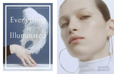 We have always though that Liz Kennedy looks pretty luminous, so the title of one of her newer editorials, "Everything is Illuminated" is very fitting. This picture was featured in On the Rocks Magazine, and was photographed by Charlotte Wales. Wales has photographed editorials for Vogue, W Magazine, and V Magazine amongst many others, so we were thrilled that our model Liz had the opportunity to be in a photo shoot with her.